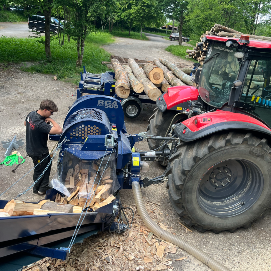 Wir bieten hochwertiges Brennholz sowie professionelle Rückearbeiten mit Rückewagen oder Seilwinde an. Zusätzlich übernehmen wir die effiziente Verarbeitung mit unserem modernen Sägespaltautomat.